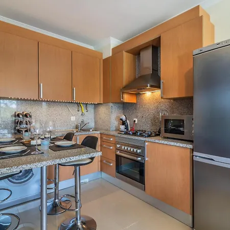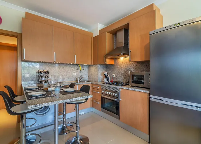 - ❓Existe uma cozinha disponível em T1 Albufeira Tranquilidade apartamento para uso dos hóspedes?Sim, T1 Albufeira Tranquilidade apartamento está equipado com cozinha equipada e oferece chaleira elétrica, refrigerador e forno.